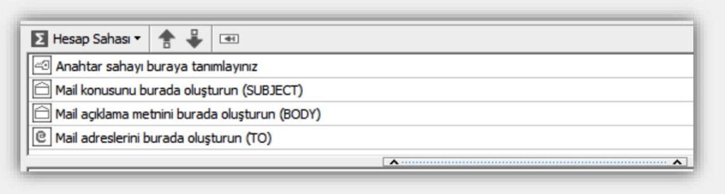 Rapor içeriğine eklenen gönderim saha tiplerinden anahtar saha ve mail adres sahası bazında mail dağıtımı yapılabilmektedir. Dilerseniz bu dağıtım işlemlerini planlanan görevlere de tanımlayabilirsiniz.