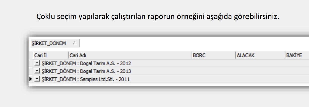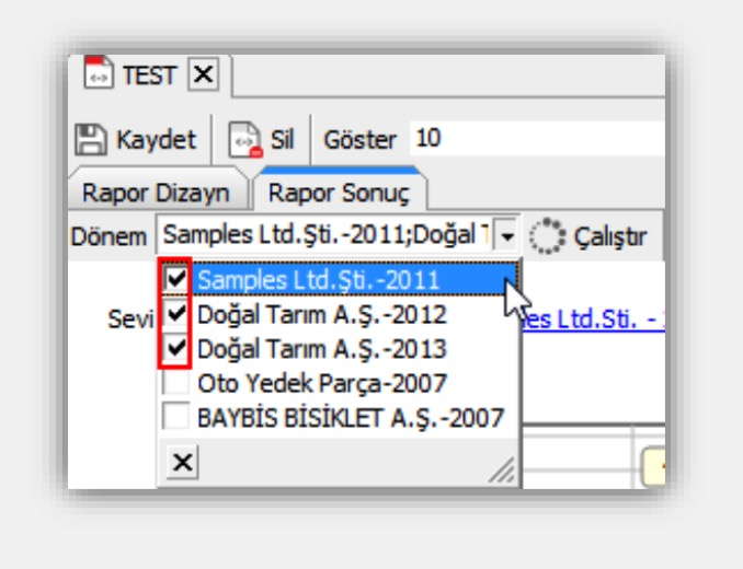 “Yönetici” yetkisine sahip kullanıcılar bir raporu sadece ait oldukları Şirket-Dönem ilişkisinde veri çekebiliyordu. Eklenen bu yeni özellik ile rapor istenen tüm dönemlerde aynı anca konsolide edilecek şekilde çalıştırılabilmektedir.